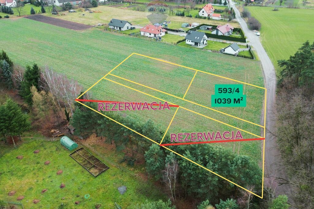 Przedstawiam Państwu atrakcyjną działkę budowlaną o numerze593/4, o powierzchni 1039 m², położoną w malowniczej miejscowości